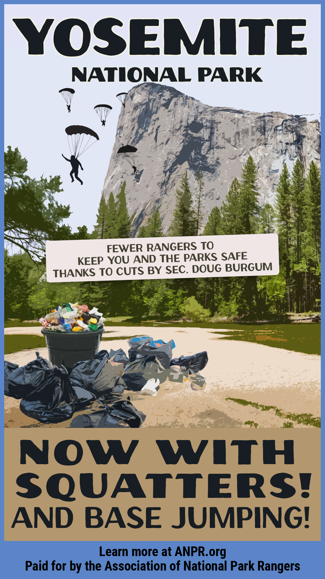Washington, D.C. — In a series of ads in bus shelters across the capital, the Association of National Park Rangers (ANPR) is calling attention to the devastating effects of Secretary of the Interior Doug Burgum’s funding and staffing cuts on our national parks.